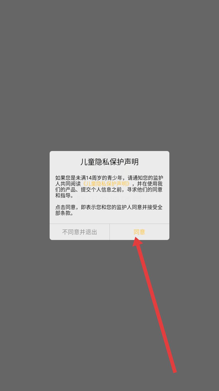 1、点击儿童隐私保护声明弹窗中的同意按钮,确认接受声明内容,进入手机号登录或注册页面。