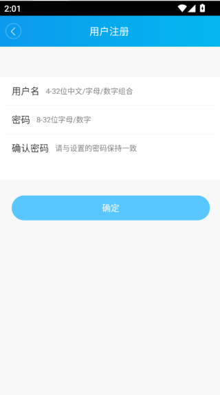 3、在这里输入您的用户名、密码、确认密码即可马上登录使用。