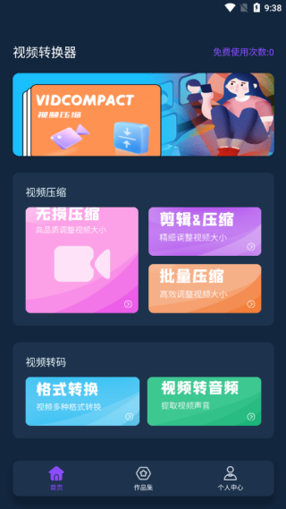 1、在首页有视频压缩、视频转换等两大版块,让大家轻松的进行编辑;