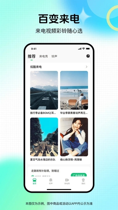 1、在首页中提供了炫酷来电铃声,可以自由的进行快速的选择;