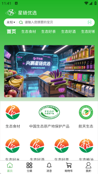 1、在首页包括生态食材、中国生态原产地保护产品、航天生态、生态好水、生态好酒等不同的版块;