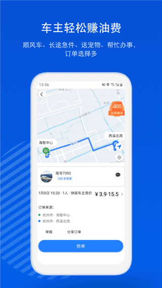 4、【顺风车司机端】上下班拼车,轻松接单,赚取油费又节能环保。