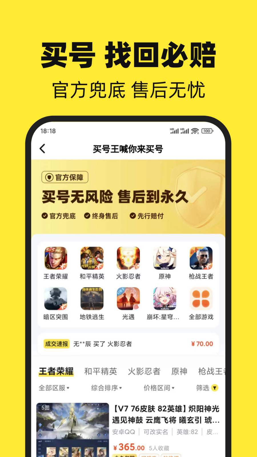 买号王app官方版是一款功能强大的游戏交易服务软件,用户可以通过该软件来查找各种高端的游戏账号资源,并且还能对自己的账号进行股价,让你买到价格合适的精选账号,同时交易过程都是经过官方保障的,确保交易的安全,让用户没有后顾之忧,需要的朋友快来下载试试吧!
