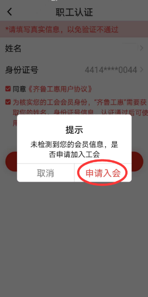 2、注册后提示是否需要立即认证,点击【立即认证】填写姓名、身份证号,认证之后会提示未检测到您的会员信息,选择【申请入会】