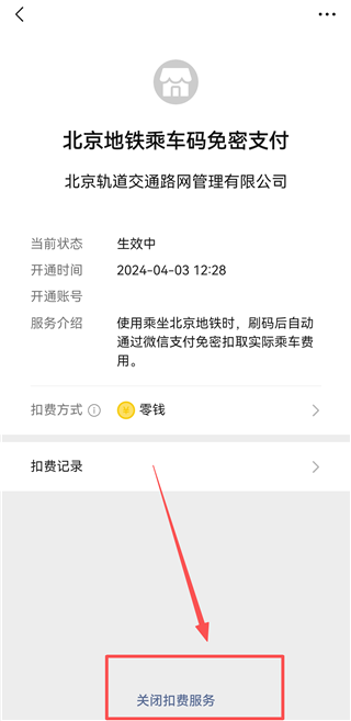 7、这里是我们开通的一些免密支付服务,点击不需要使用服务,如【北京地铁乘车码免密支付】。
