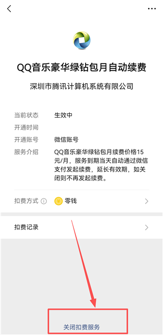 4、这里是开通的一些自动续费服务,如QQ音乐会员自动续费服务,点击它。