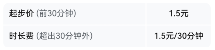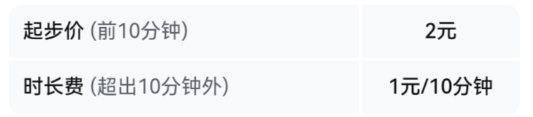 骑行费用以开锁时展示的计费规则为准,时长费不足1个计费周期时,按1个计费周期计算费用。