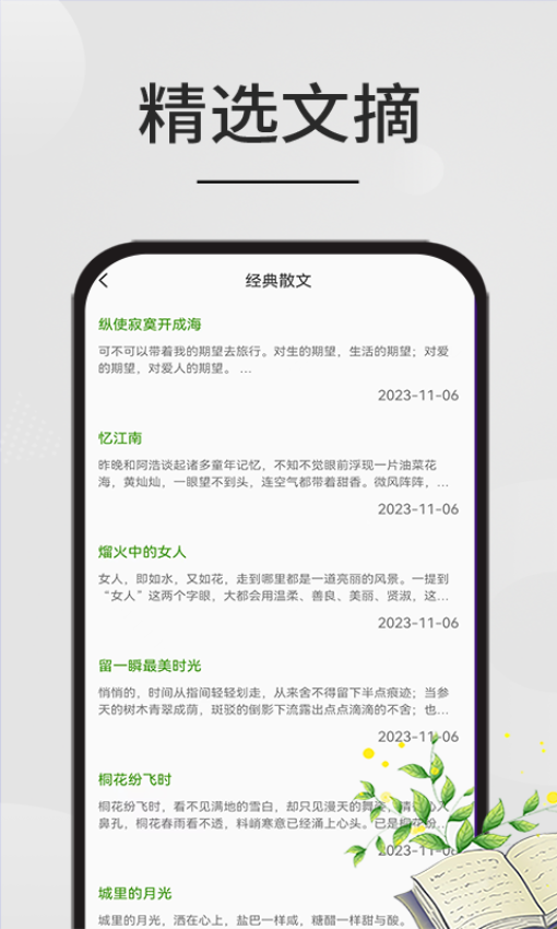 精选优质文摘内容,在线可一览无余,帮助你发现诸多美文,享受文章的乐趣;