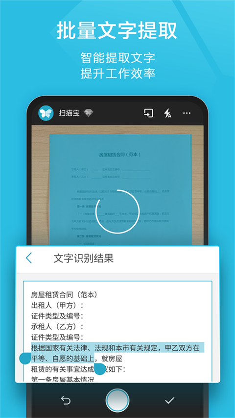 1、支持一键拍摄并自动裁剪矫正,生成高清PDF或图片格式文件。