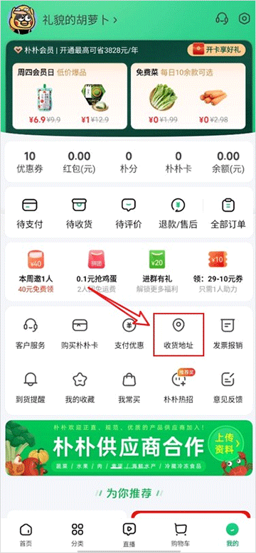 朴朴买菜app怎么改地址