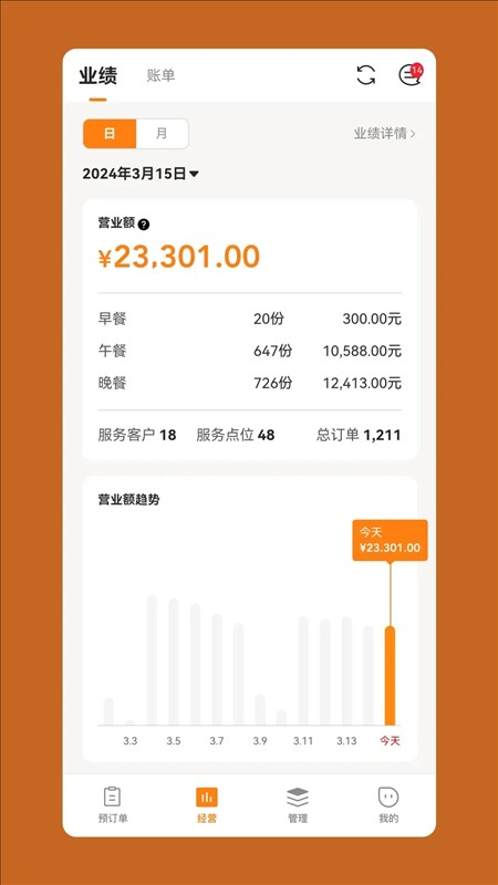 1、营业统计功能:商家可以通过应用查看门店的整体运营情况,了解销售额、客流量等关键指标。