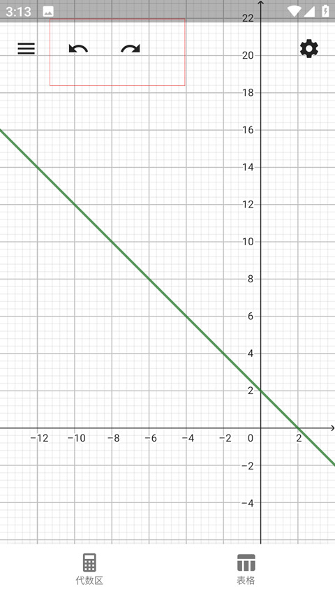 cas计算器app用户界面包括代数区, 数值表和绘图区,所有的视区都是动态连接的, 这意味着任一视区中的更改也都将立即在其他视区中显示出来。