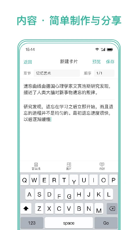 1、可以把知识编辑成卡片,目前支持文字、图片。