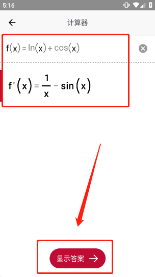 2、由于小编设置默认求解模式为“求函数的导数”,因此下图显示答案可以直接得出求导答案;初次使用的用户需要自行设置默认求解模式才可显示相同效果,具体操作请参考步骤3