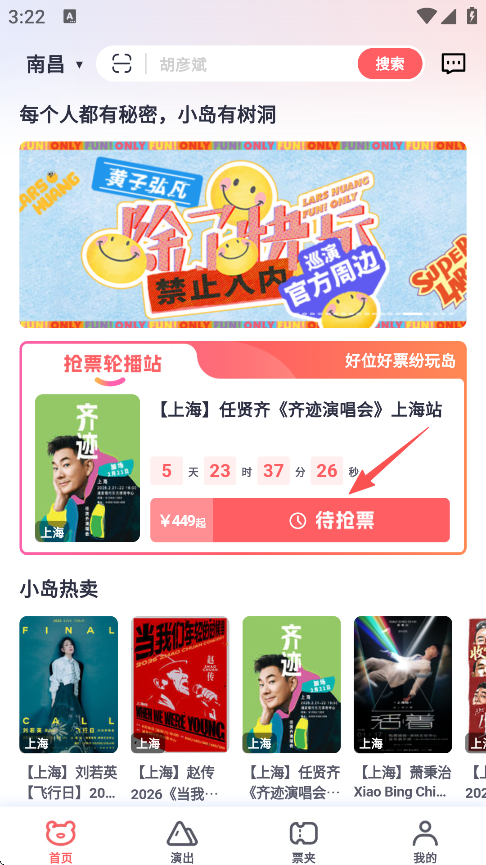 1、首先找到你需要抢票的演唱会,随后点击“待抢票”。