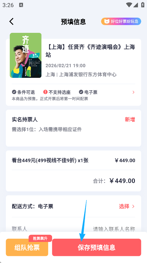 2、买票:官方售票通道,让您享受现场演出,每张票均可查询。