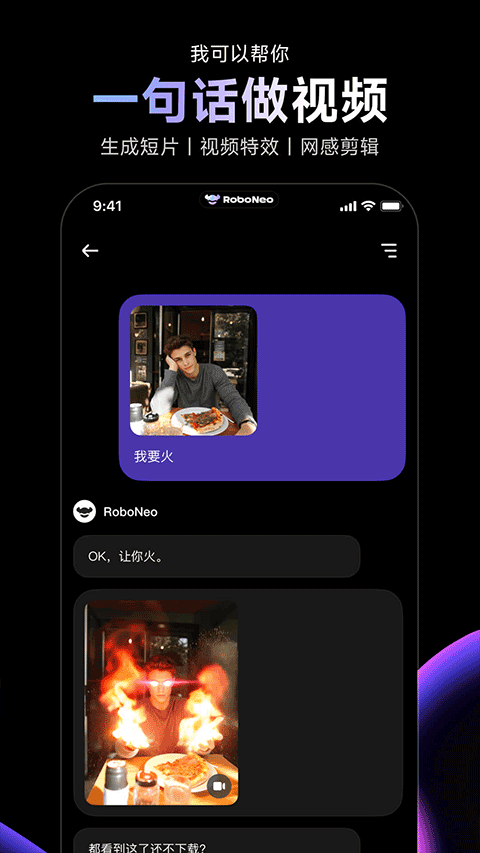 RoboNeo app主要是帮助用户创作视频作品的软件,该软件实现了“一句话帮你P图、设计、做视频”的智能创作技术,只需要导入你的素材,提出需求,ai助手一键生成作品,并且还支持不同风格的作品供你选择,为用户节省了大量的时间,感兴趣的小伙伴可以在本站免费下载。