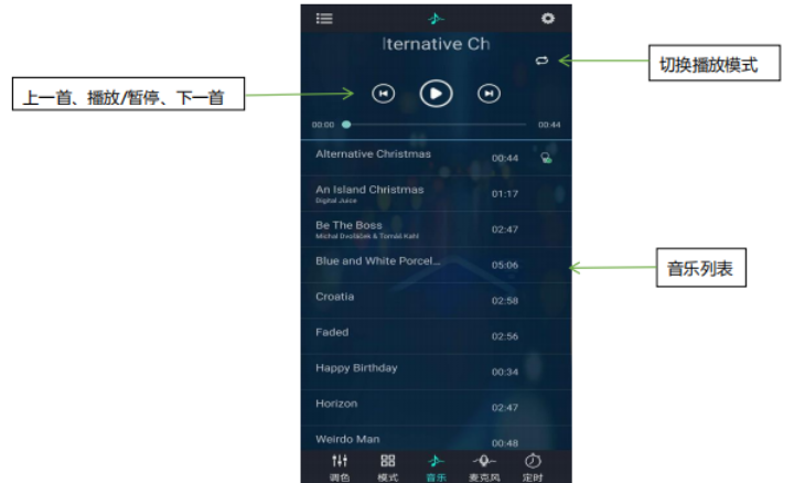 3、有很多的歌曲可以进行播放,可以让灯光随着歌曲改变,非常有趣。
