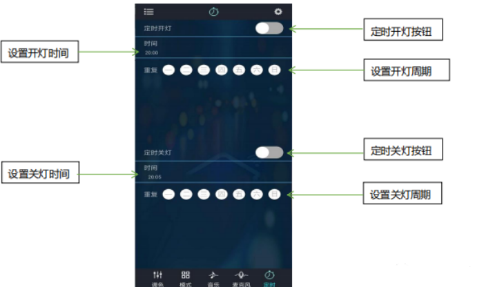 1、有多种模式可选,可以选择灯怎么开启,改变相应的循环。