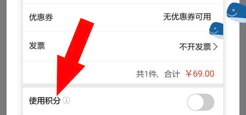 然后就是记住在支付订单的时候有的商品需要我们点击下方的有个【使用积分】的按钮,这个按钮如果没有选择,那么你就是用自己的钱买,点了这个才是用积分支付。