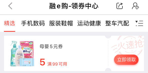 我们在融e购工商银行官方版中,在【我的融e购】可以看到一个【领劵中心】大概的位置是在中间的地方,也就是【常用工具】里面,然后我们点击【领劵中心】,然后领取一张你自己想要购买东西的优惠券,然后就可以点击右边的【去使用】。然后点击进入之后,就是直接在商品的购买页面,然后当我们所购买的商品的价格和我们领取的电子券是相符合的时候。