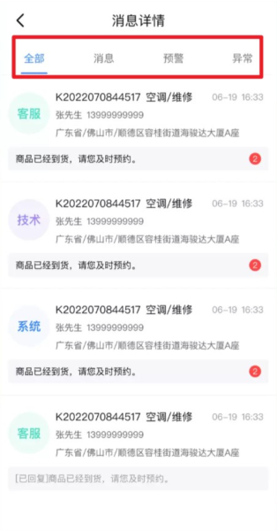 4、进入“消息”页面可筛选查看各类通知与预警提醒。