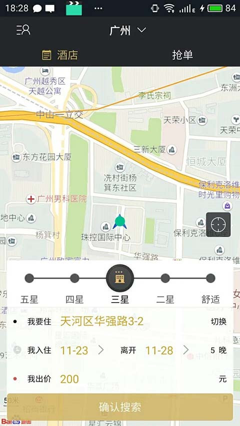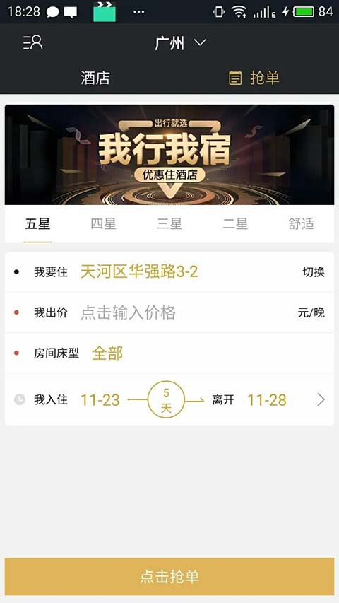 4、我们还可以选择酒店的等级,有舒适、二星、三星、四星、五星。