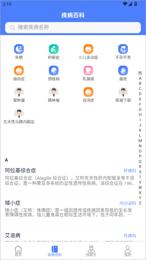 3、疾病百科模块有非常多的病名供我们查阅。