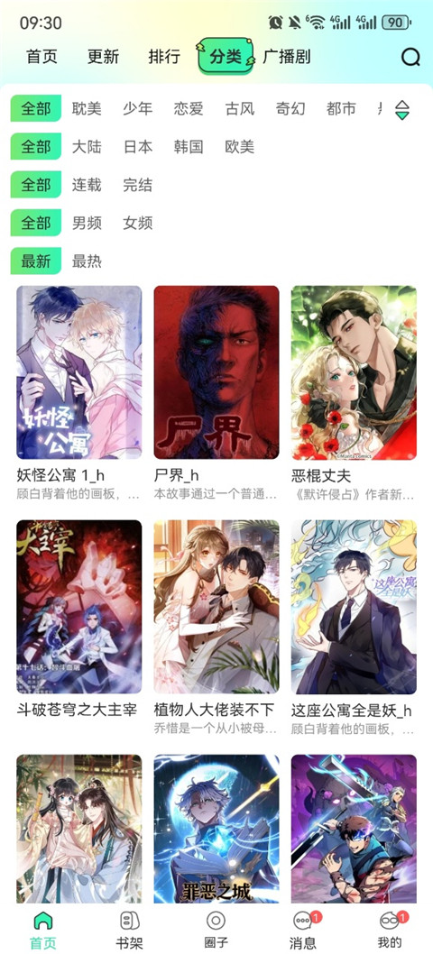1、设有漫画与广播剧分类及排行,支持男频女频、最新最热等筛选,快速找到心仪内容。