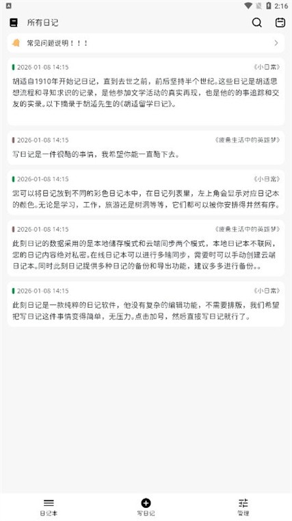 时间轴展示:以时间轴形式呈现日记列表,用户可直观看到记录轨迹,回顾成长历程。