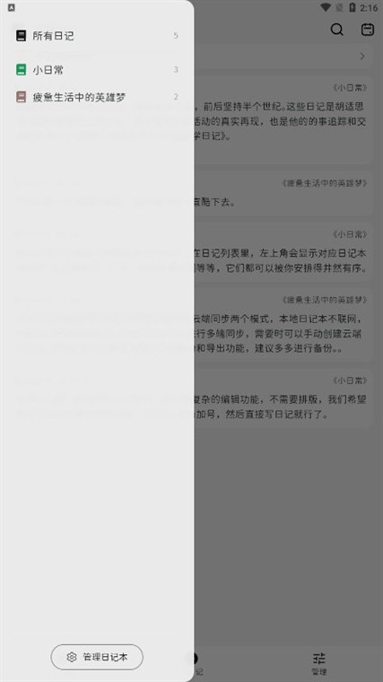 【多彩日记本】你可以创建多个不同颜色的日记本,查看日记时一目了然。