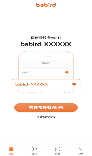 2、下载安装好app,打开WiFi,链接WiFi名为bebird-S5-xxxx。