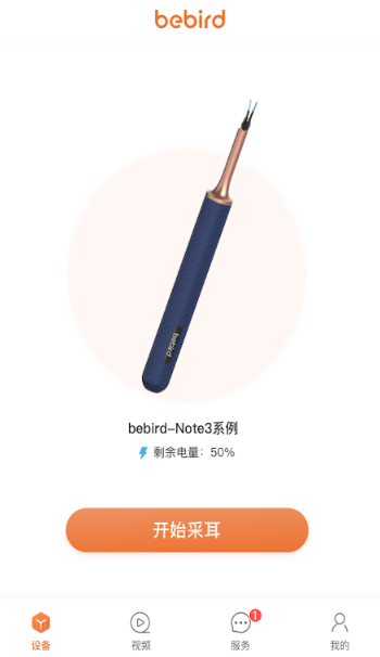 3、返回bebird app上再次点击开始使用,即可通过可视采耳棒可以实时观察耳内的情况。