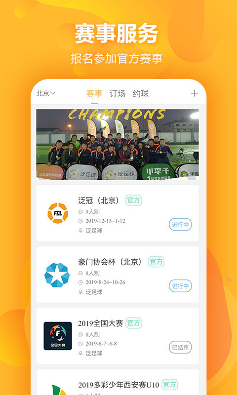2、覆盖全国范围业余足球大众,涵盖不同年龄阶段、不同竞技水平的丰富赛事活动,为广大球友提供全国级别自我展示、竞技和娱乐平台。