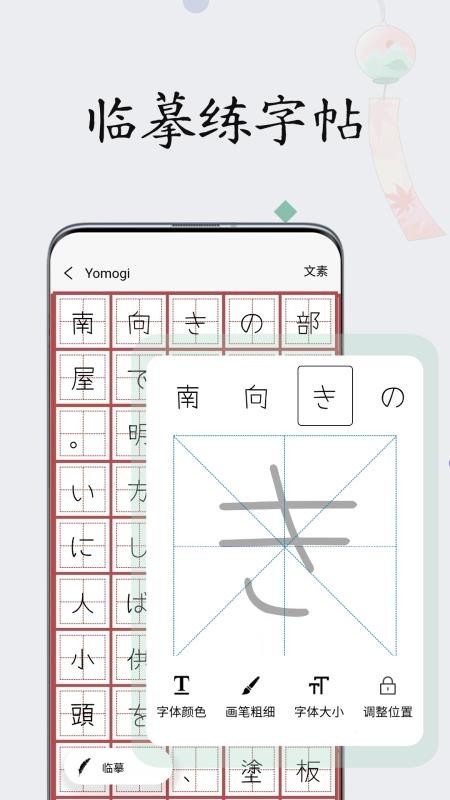 1、软件提供独特的日语字帖练习,学习临摹书法简单;