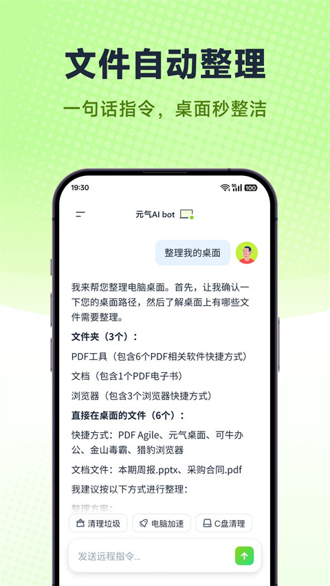 2、在手机端发送指令,让电脑端的元气AI Bot执行各种任务