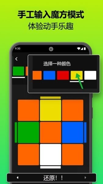 还可以让用户手动输入魔方的颜色方向,让软件快速的提供还原操作;
