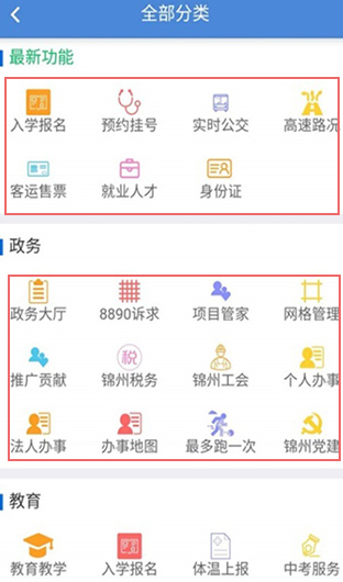 1、在本站下载安装锦州通app,在首页可以堪忧有健康吗、社保服务、养老助残、教育教学等;