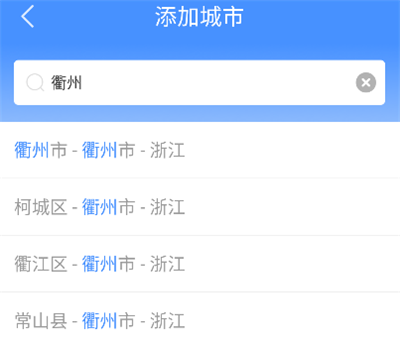 3、进入添加城市页,搜索目标城市进行添加。