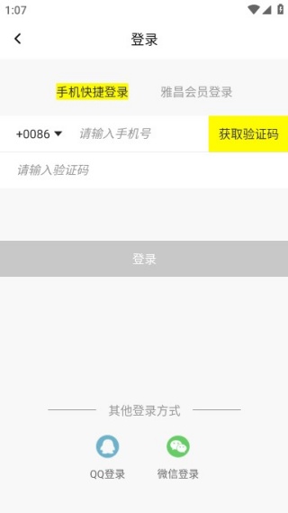 1、输入手机号码获取验证码进行登录,支持会员登录模式。