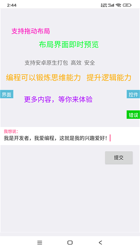 4、iApp只是一个手机安卓应用开发工具,它永远只会做一件事情,协助用户在手机上创建开发应用程序,不要带有色眼镜看待。