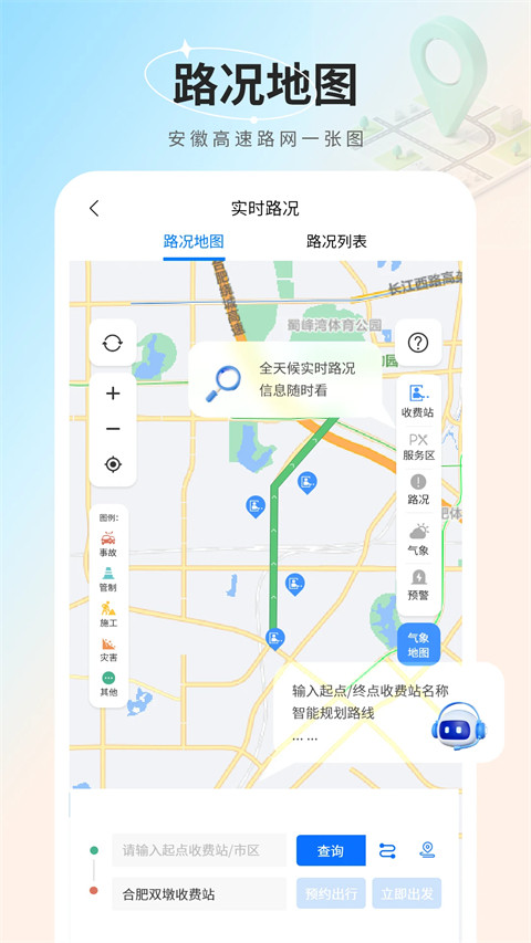 安徽省内高速公路实时路况信息播报,每隔两小时实时刷新。