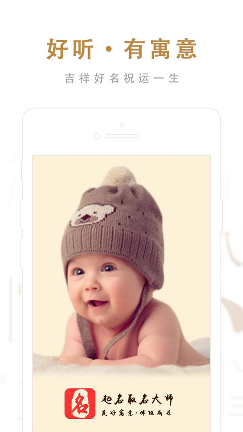 起名取名大师app是一款极具创意的取名软件,它可以用于为小孩取名做参考,也可以用来给已取名字打分,它会根据用户提供的生辰八字,星座风水等给孩子取名,各种有寓意,好听的名字一键生成,让家长再也不用为取名而烦恼,而且还支持重名查询,英文起名等。