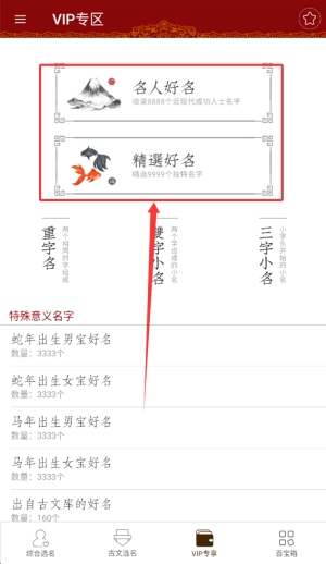 3、VIP专享板块提供优质名字推荐与精选名称合集,便于会员查阅高品质命名资源。