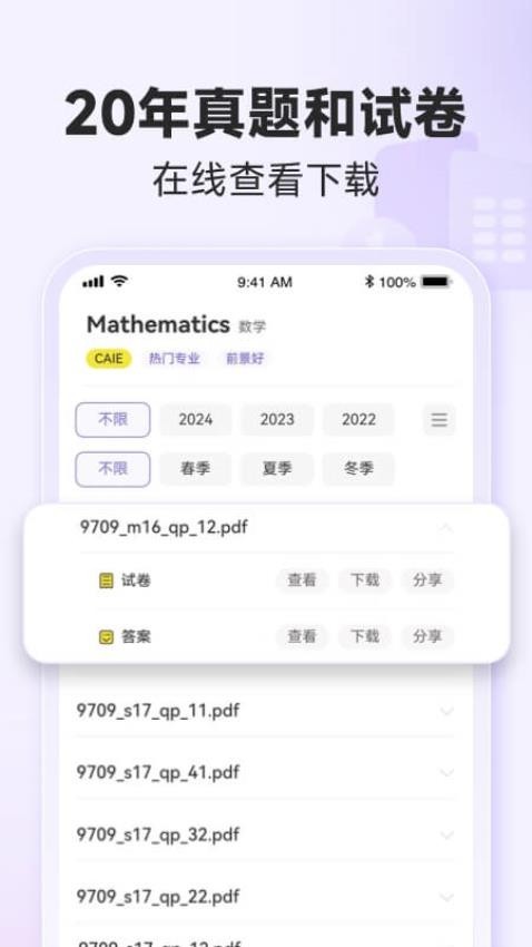如果你有出国留学的打算,那千万不能错过这个国际课程题库app。软件题库资源丰富,分类广,质量高,刷题有这一款软件就够了。软件上的试题都是支持下载的,下载后随时随地拿起手机就能刷题,就算没有信号也可以操作,非常方便,希望你能通过在平台上的学习顺利达成留学的目标。