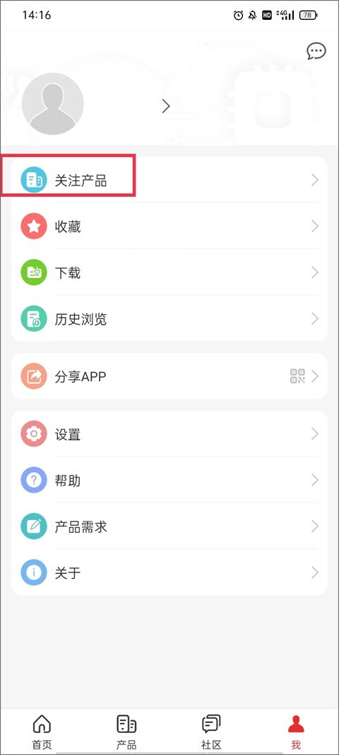 方法二:进入产品资料页,点击右上角关注即可。