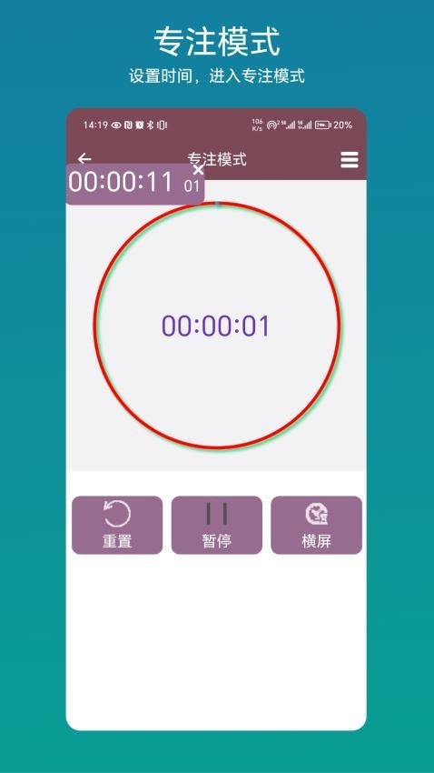 需要集中注意力时,开启专注模式,并可设置密码保护,防止误操作,保证计时过程不中断。