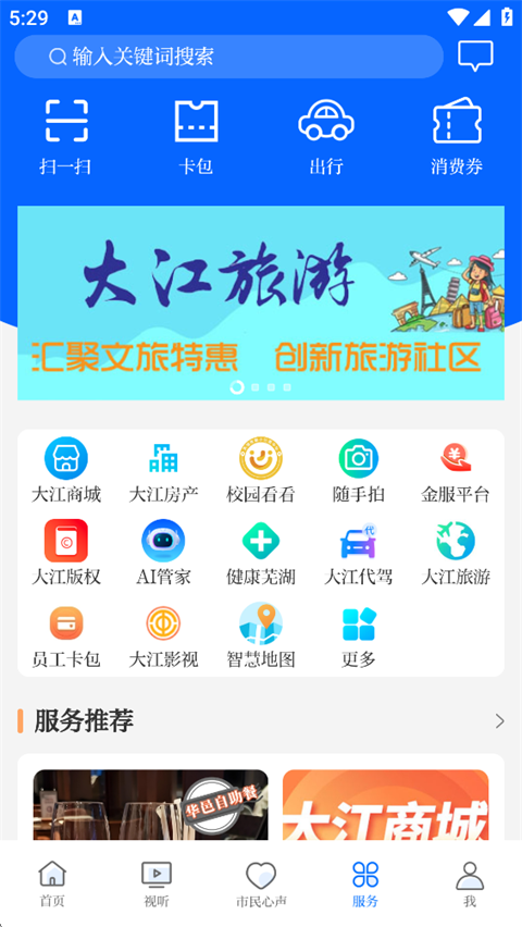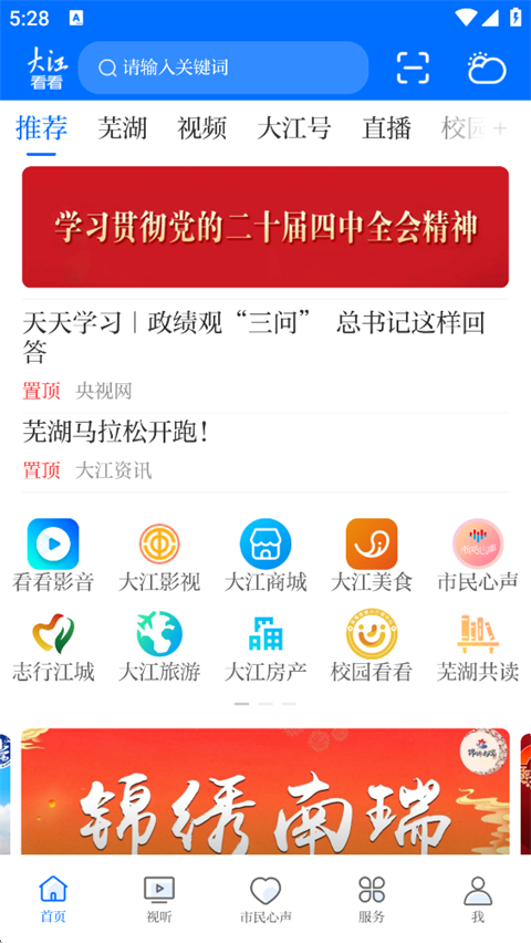 大江看看app是一款为芜湖市民打造的一款新闻资讯阅读软件,它每日提供芜湖本地大大小小的新闻,以及全球热点问题,提供视频直播和热门活动内容,让你在家就能了解天下事,除此之外,它还提供了很多便民服务,如土特产购买,代驾服务,查旅游景点等,非常实用,欢迎用户下载使用。