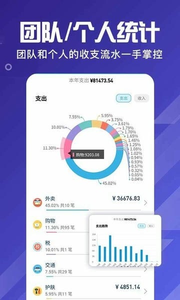 团队和个人的收支流水一手掌控