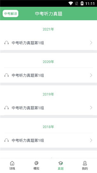 4、其中最最重要的就是中考的听力真题,这个可以说是拥有了前几年所有的中考听力,用户可以根据自己的需求进行选择。